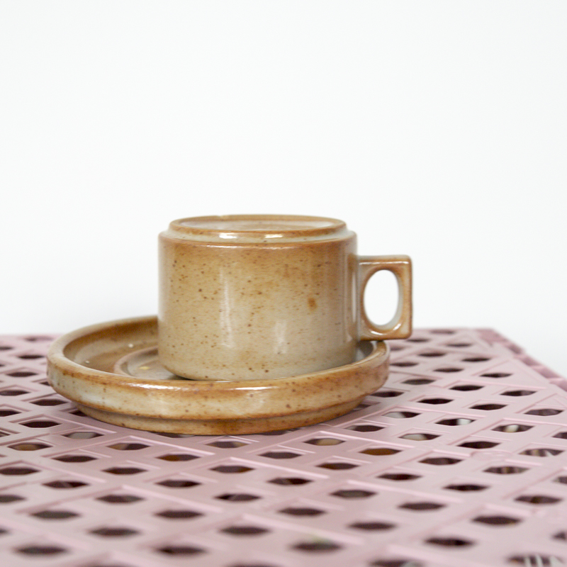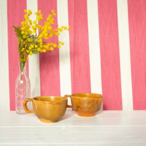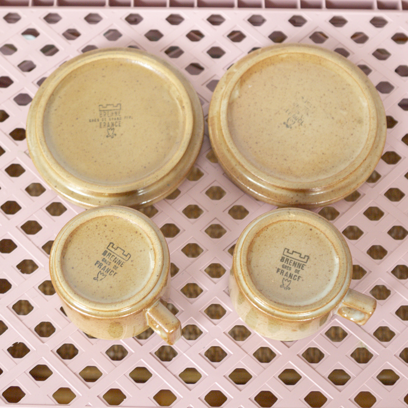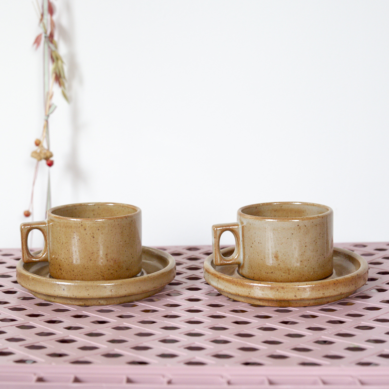 2 tasses à café et ses soucoupes en grès de Brenne France. Sa ligne assez rétro en fait une vaisselle très élégante.
