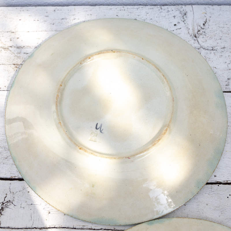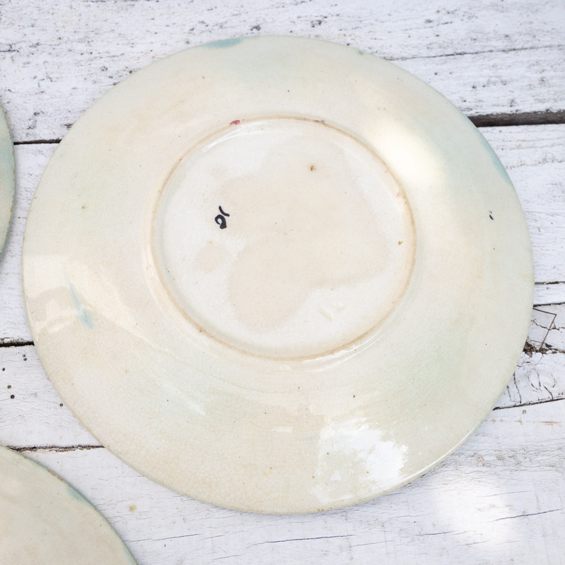 Les assiettes sont en bon état, pas de fêlure ni d’ébréchure. Les couleurs et l’aspect de la porcelaine montrent des signes du temps qui passe (voir photos).