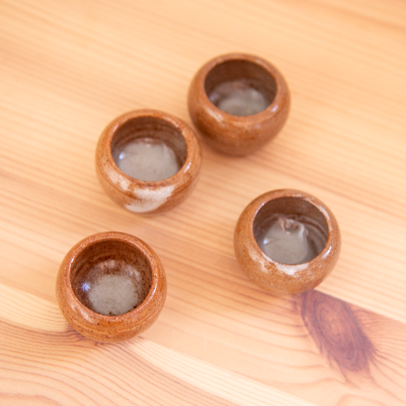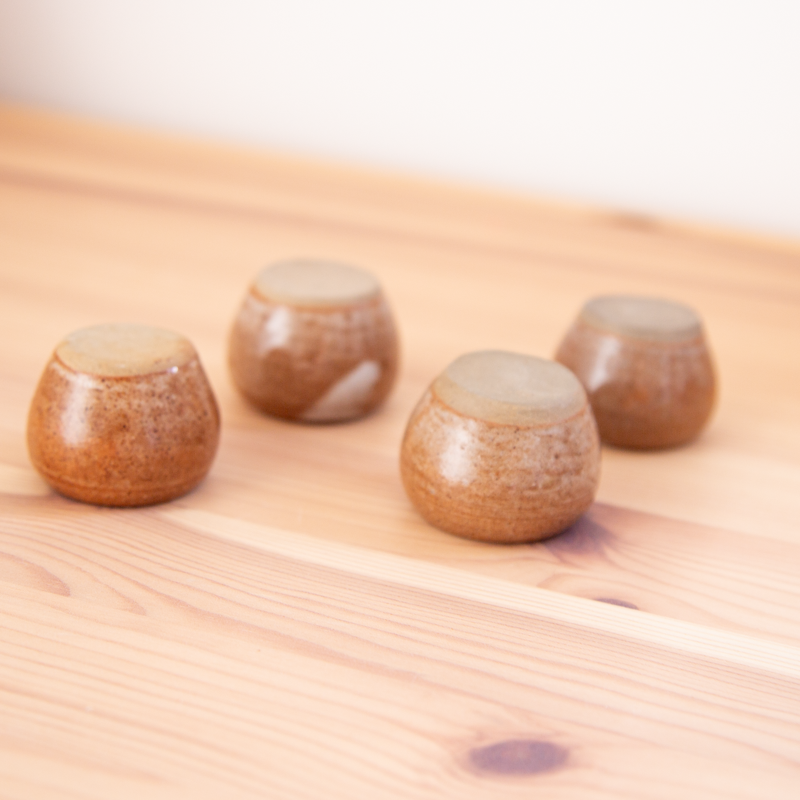 Lot de 4 bougeoirs en grès aux nuances marron.