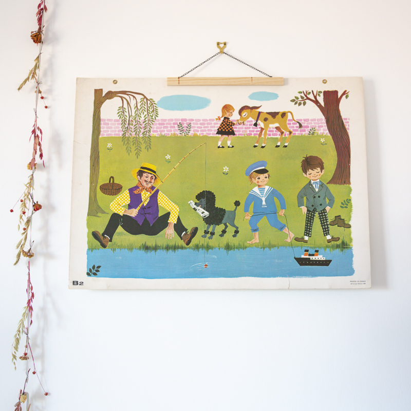 Affiche scolaire des éditions Nathan datant de 1968. Illustration recto seulement par Nina Morel, intitulée « B2: Daniel et Valérie ».