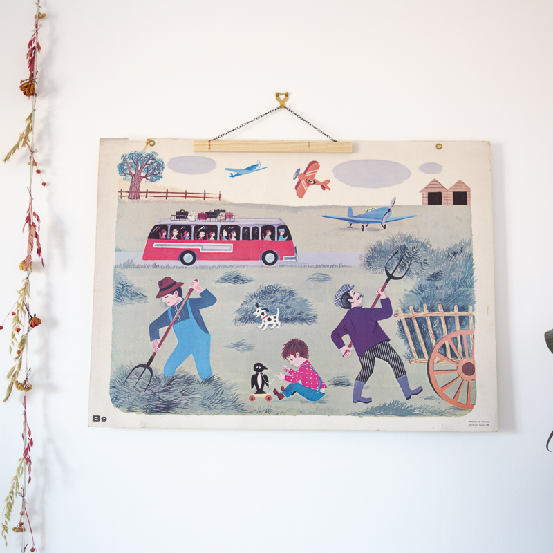 Affiche scolaire des éditions Nathan datant de 1968. Illustration recto seulement par Nina Morel, intitulée « B12: Daniel et Valérie ».