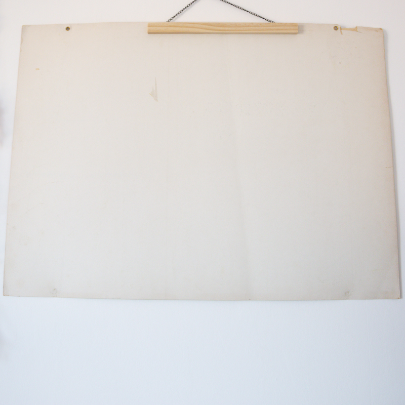 A noter: le coin supérieur gauche est abimé, légère pliure au milieu de l’affiche, les couleurs sont un peu passées, signes du temps qui passe… (voir photo).