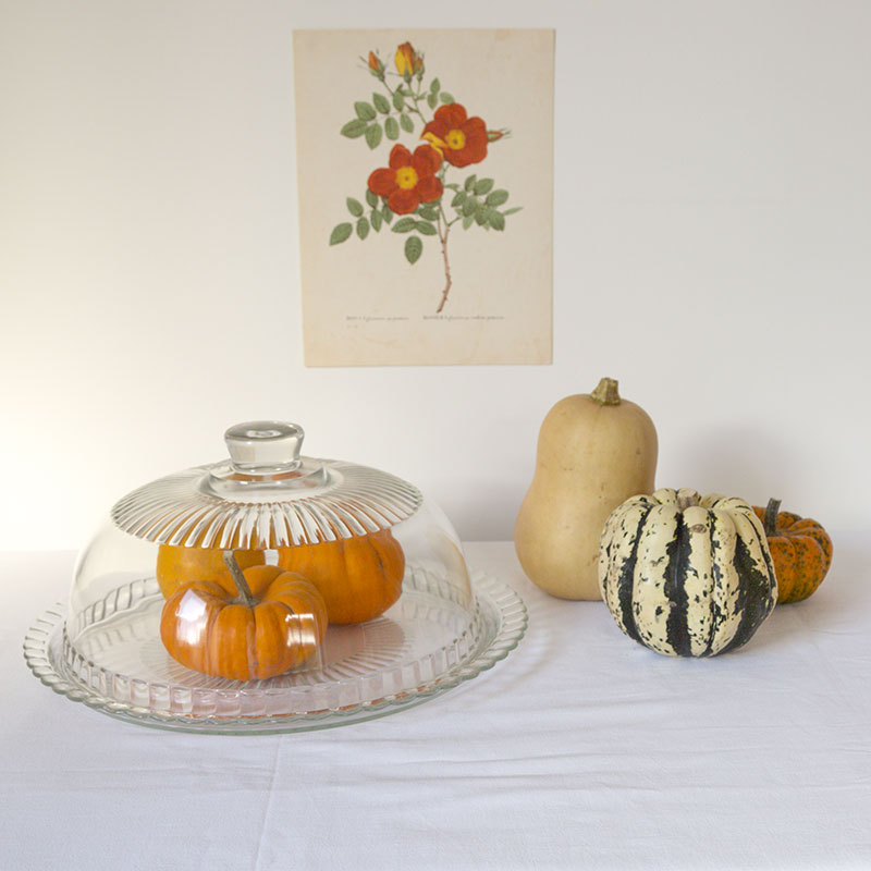 Assiette et cloche de présentation en verre en parfait état, de la marque Arcoroc, made in France.