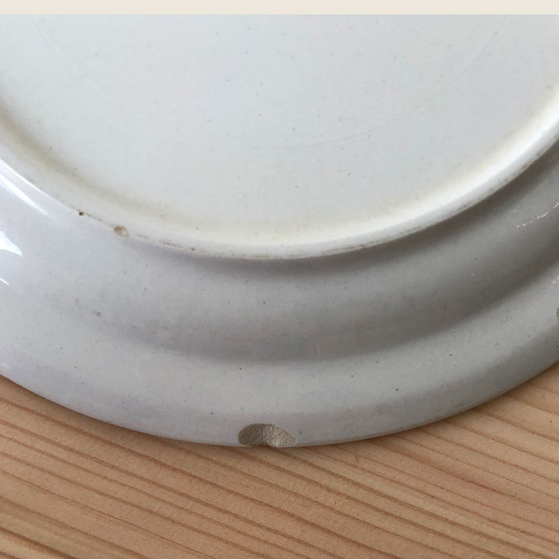 A noter : L’assiette dauphin possède un éclat sur le rebord arrière, invisible lorsque l’assiette est présentée sur une table (Cf visuel).
