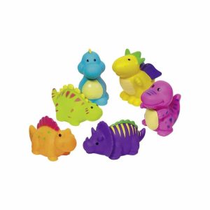 Paquet avec 6 ballons rouge, jaune et violet avec des dinosaures.