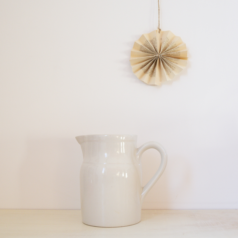 Carafe, cruche en grès blanc, datant des années 1970. Le pichet est en parfait état, signé « pots en grès Digoin France »