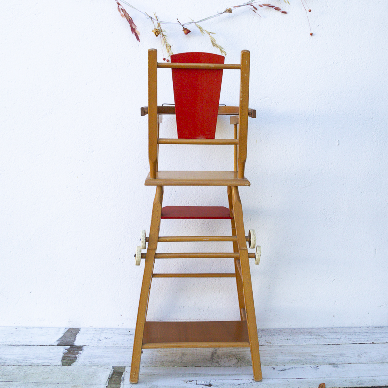 La chaise haute est transformable en bureau trotteur sur roulettes comme celle de bébé.