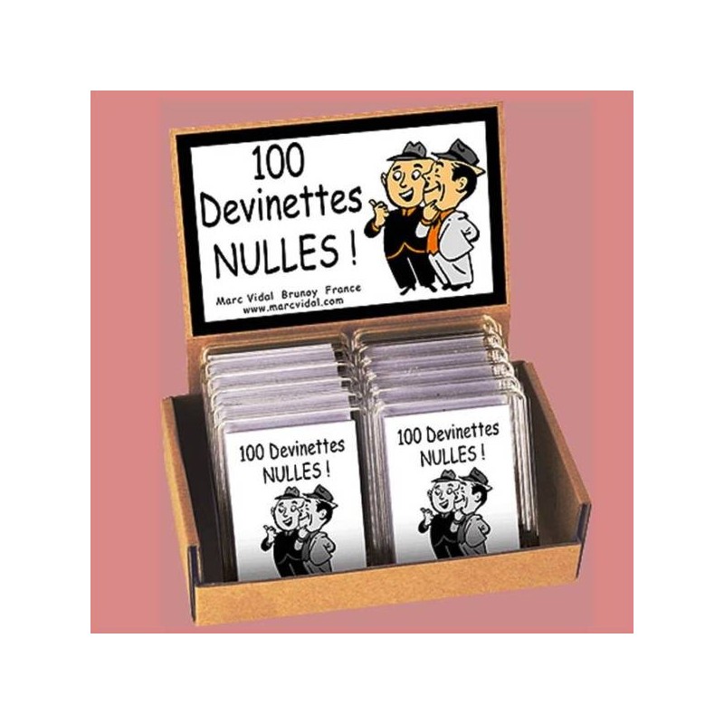 Cartes avec devinettes, avec d’un côté la devinette et de l’autre les réponses. Un jeu pour mettre de l’ambiance dans une fête.