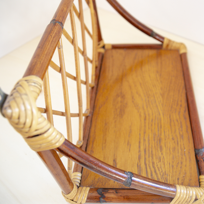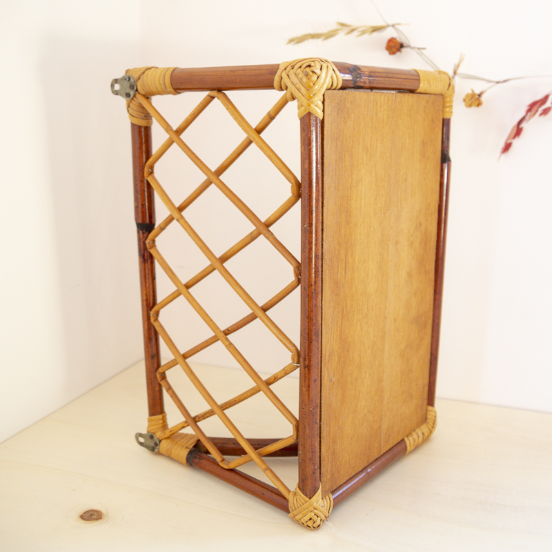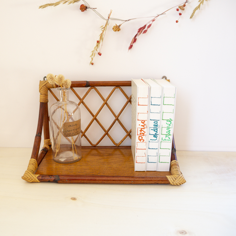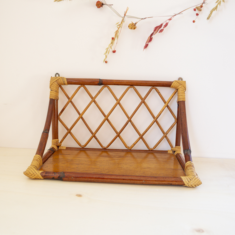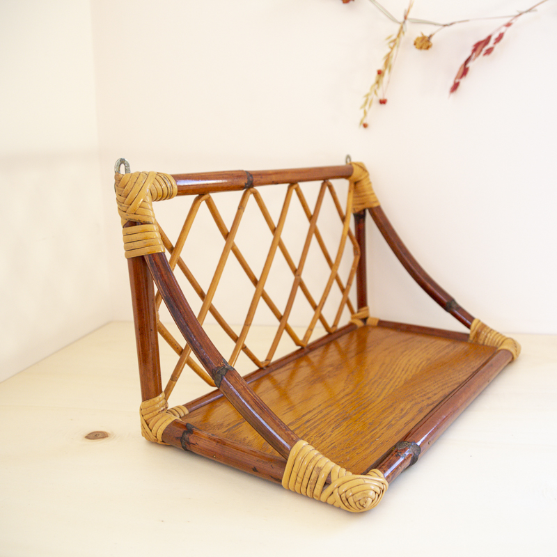 Etagère murale en rotin, vintage, datant des années 1970. Elle est en très bon état et apportera une note vintage à votre décoration.