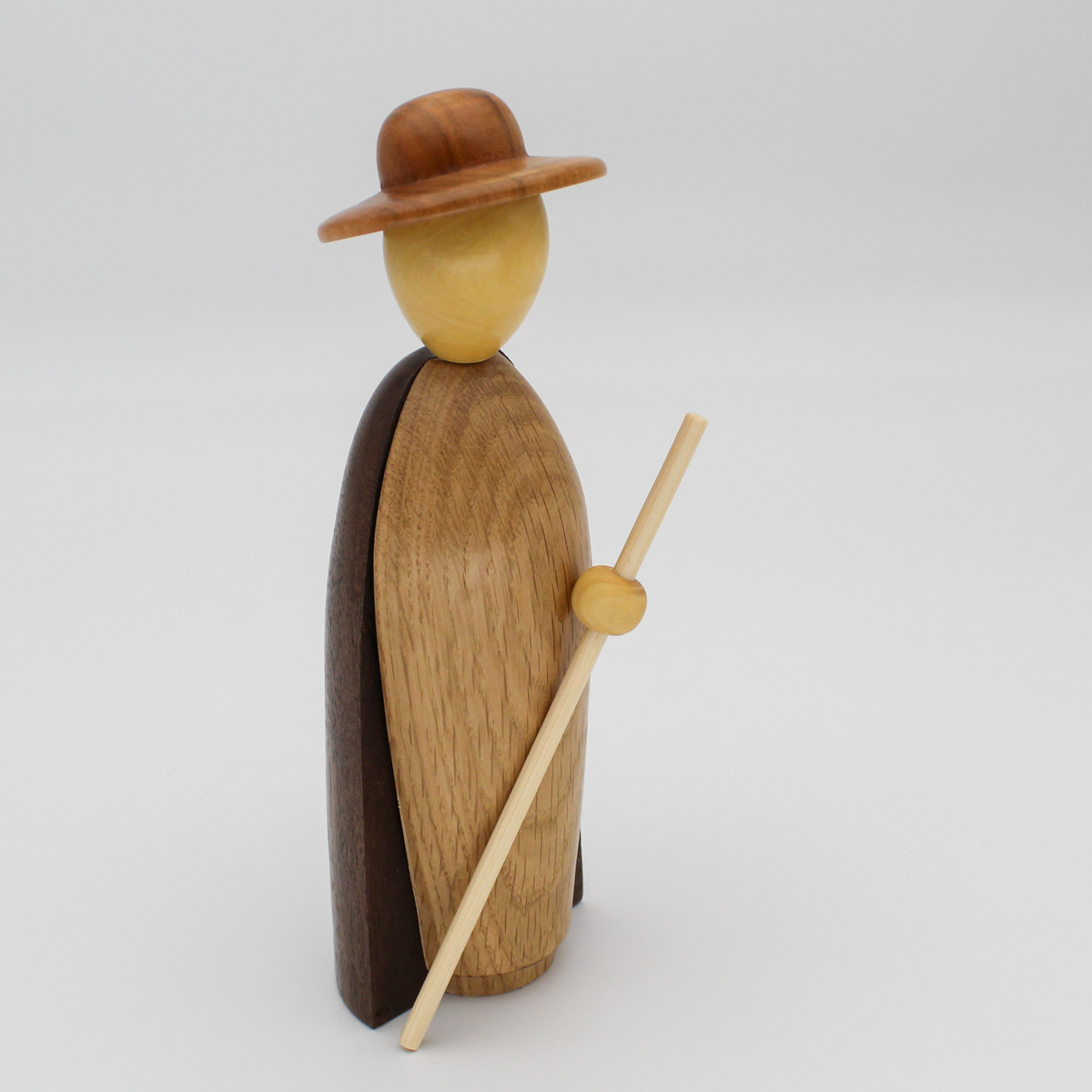 Ce grand Berger et son mouton en bois tourné, façonnés avec soin pour compléter votre crèche de Noël. Le berger, aux lignes épurées, et son mouton incarnent simplicité et authenticité. Réalisés dans des belles essence de bois (noyer, chêne, buis et merisier pour le berger; tilleul pour le mouton), ils apportent une touche chaleureuse et naturelle à votre décoration de fêtes. Une création artisanale unique qui sublime la tradition de Noël avec élégance.
