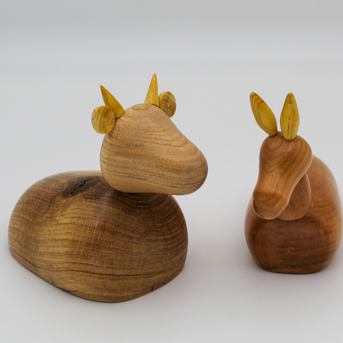 Complément de la scène de la Nativité, l’âne et le bœuf, façonnés en bois tournés, apportent une touche harmonieuse à l’ensemble. Chaque animal, d’une taille proportionnée aux personnages principaux, est réalisé avec des essences de bois différentes pour accentuer la richesse des couleurs naturelles et des textures. Ce duo ajoute un charme rustique à cette représentation traditionnelle.Une création artisanale unique pour ajouter une touche authentique à votre intérieur pour Noël.