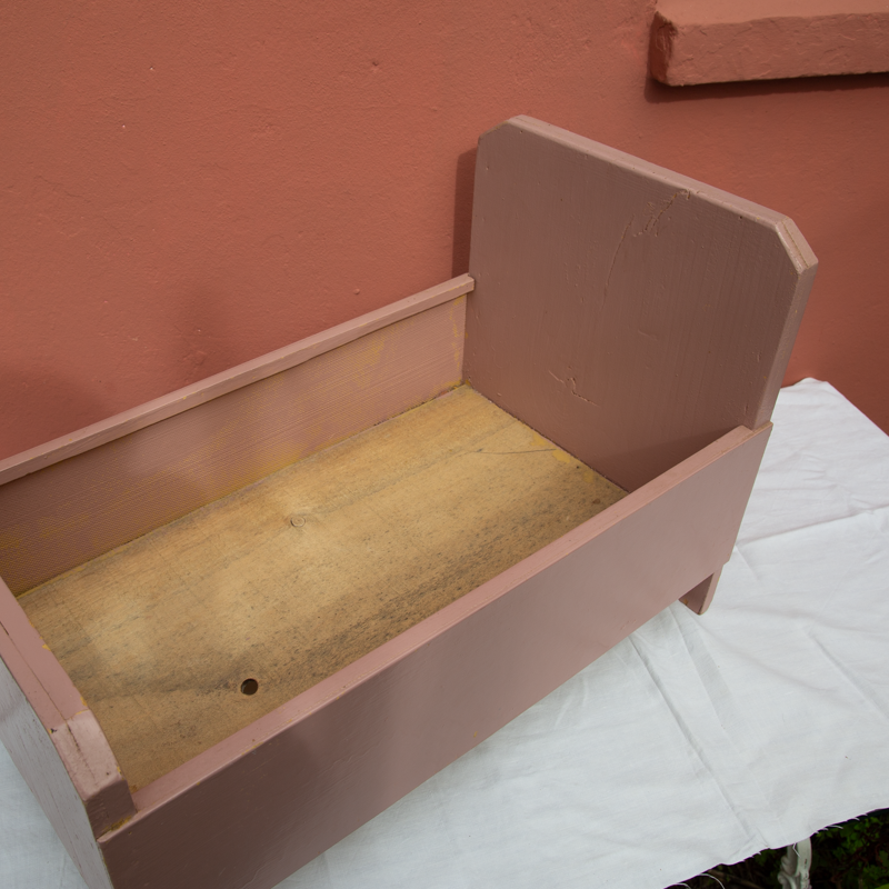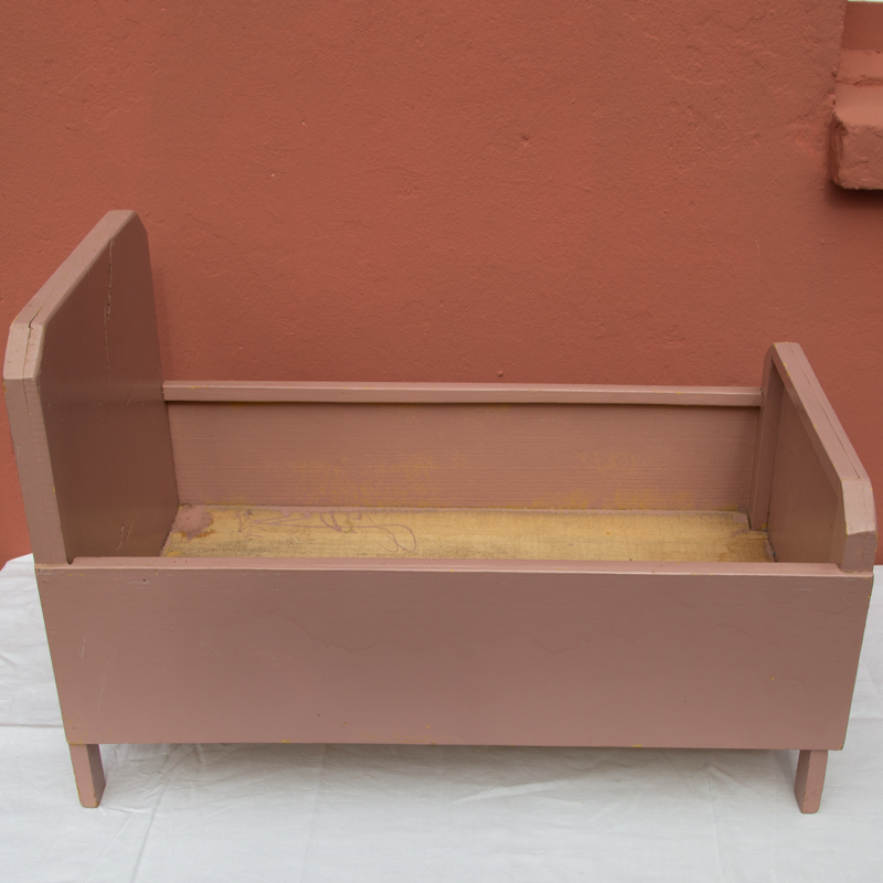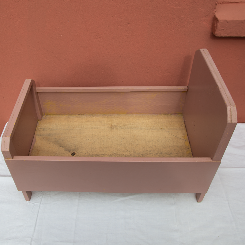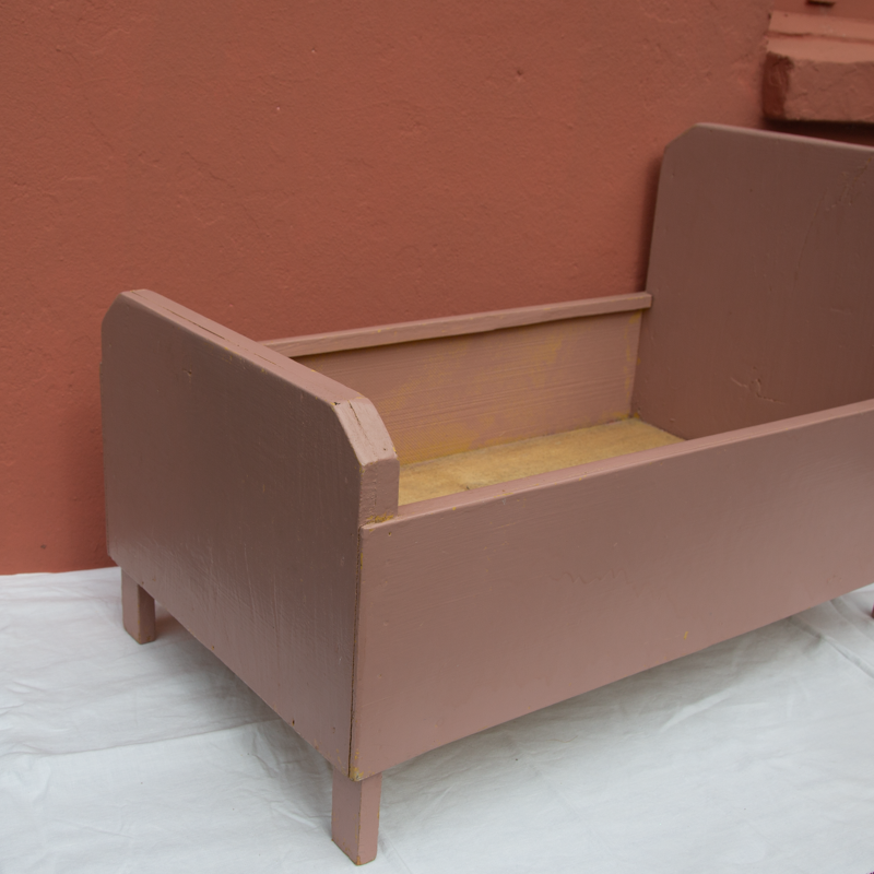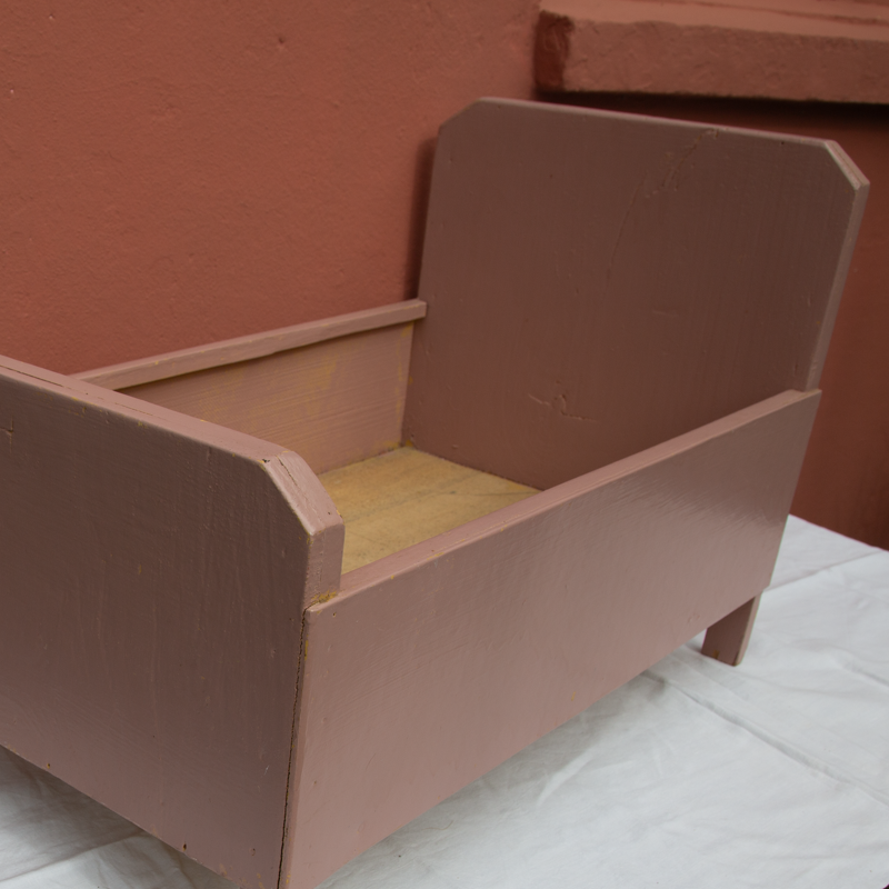 Lit de poupée en bois datant des années 1960.