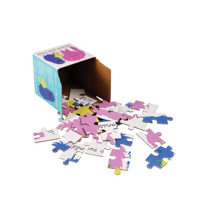 Mini puzzle présenté dans une boîte en forme de cube.