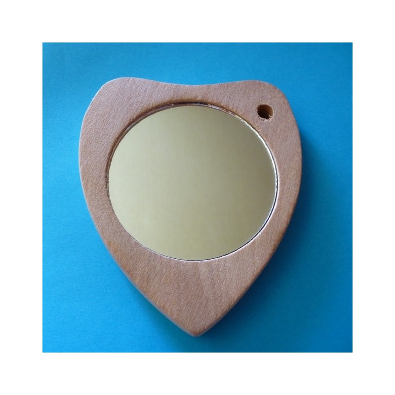 Miroir dans un coeur en bois à décorer avec peinture, serviettes à coller, feuille decopatch, paillettes. Un trou est prévu pour attacher un ruban.