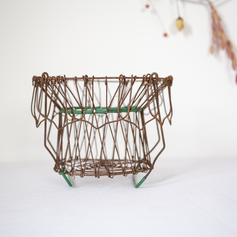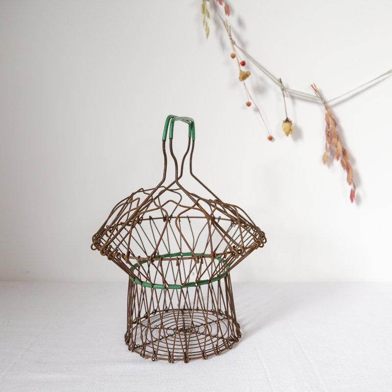 Panier à oeufs en métal et perles vertes. Ce panier articulé propose une multitude de combinaisons (voir photos).