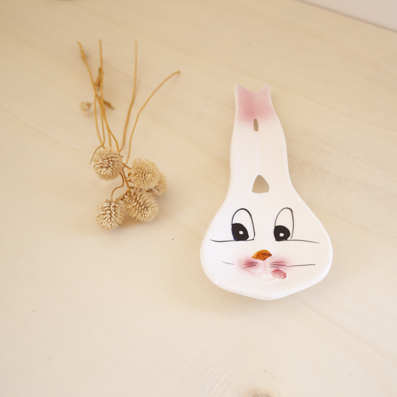 Pose cuillère en céramique, à décor de tête de lapin, vintage.
