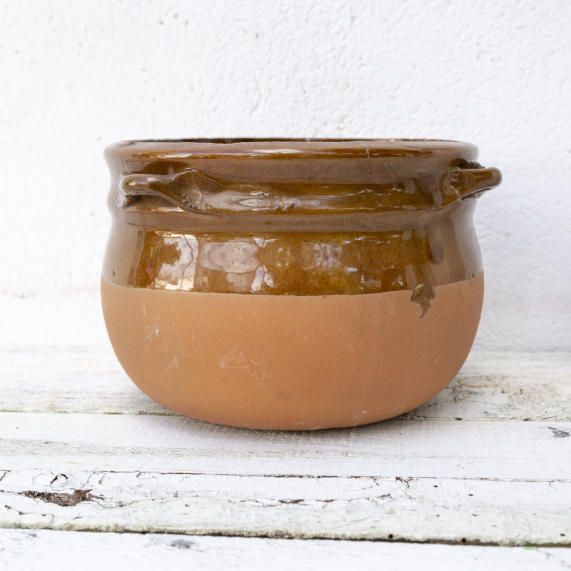 Pot en céramique bicolore, doté de 3 petites anses décoratives.. Aujourd’hui, il fait son grand retour en cuisine ou en décoration.