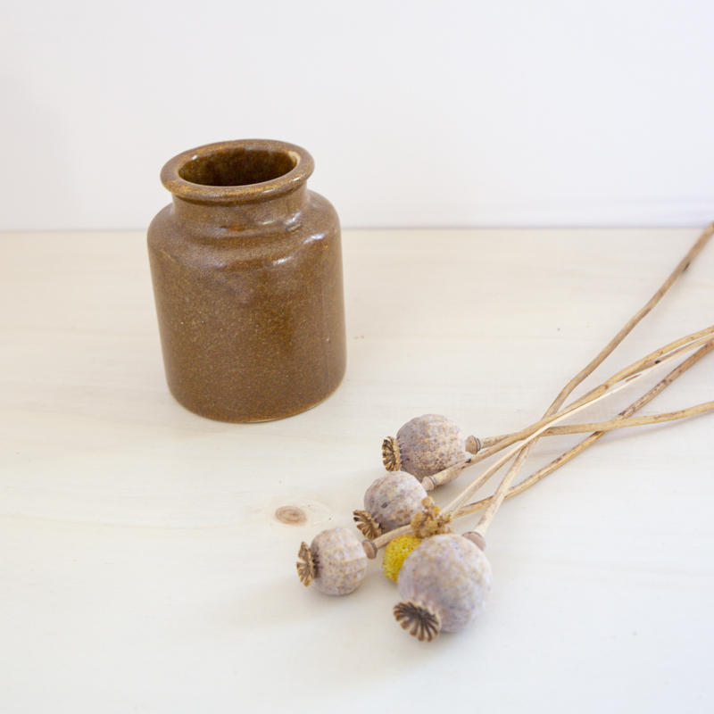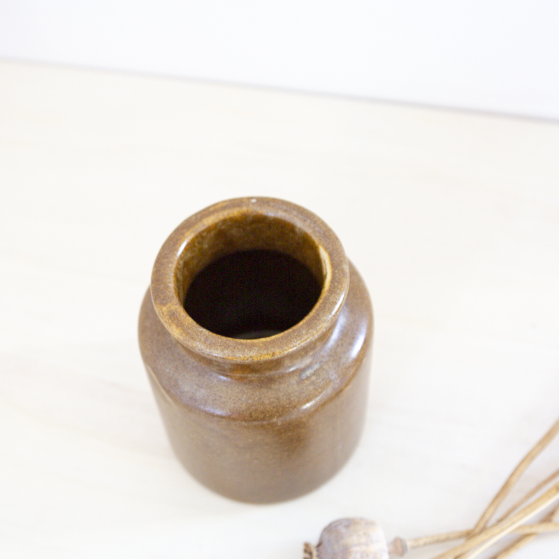 Pot en grès de couleur marron. Pour une utilisation en cuisine, décoration ou même au jardin !A noter : le pot est en très bon état. A noté une toute petite irrégularité sur son le corps du pot au moment du façonnage, un renfoncement (voir photo vue du haut).