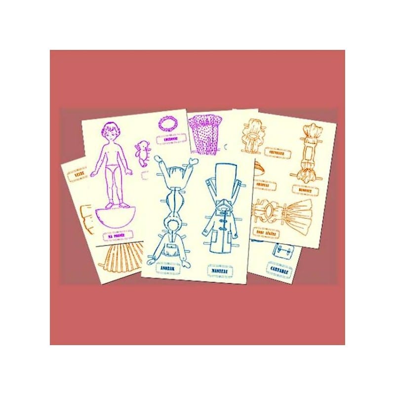 Dans une pochette 7 planches avec une poupée de papier, sa garde-robe et accessoires à découper et colorier.