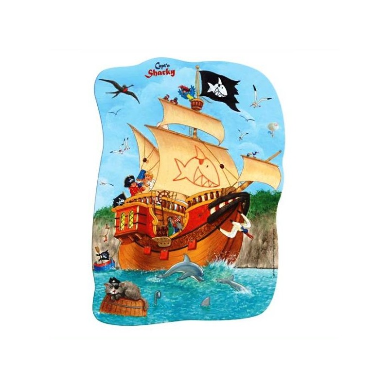 Pour découvrir sur quel bateau les pirates vont embarquer, il faudra reconstituer ce Mini puzzle de 30 pièces pour découvrir sur quel bateau les pirates vont embarquer. Puzzle livré dans une boîte en carton carré.
