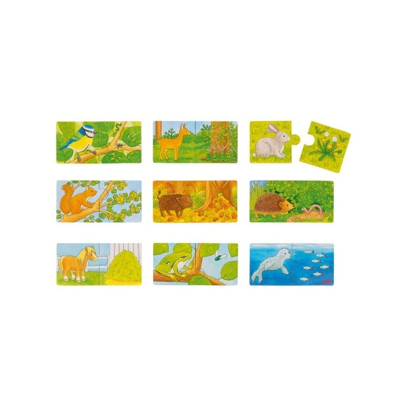 Les premiers puzzles avec 2 pièces à réunir : l’animal et ce qu’il aime manger.