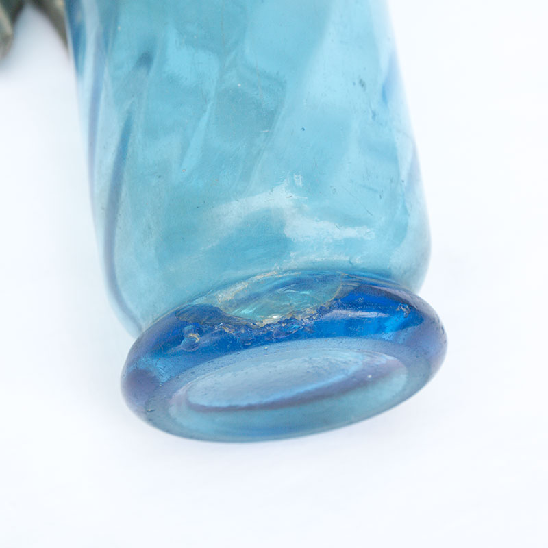 A noter: éclat sur le socle de la bouteille à l’arrière. Le bouchon en métal est dessouder, il manque le tube (voir photos).