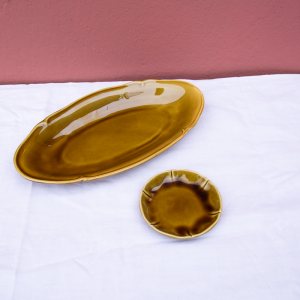 2 plats ovale et rond vert Gien